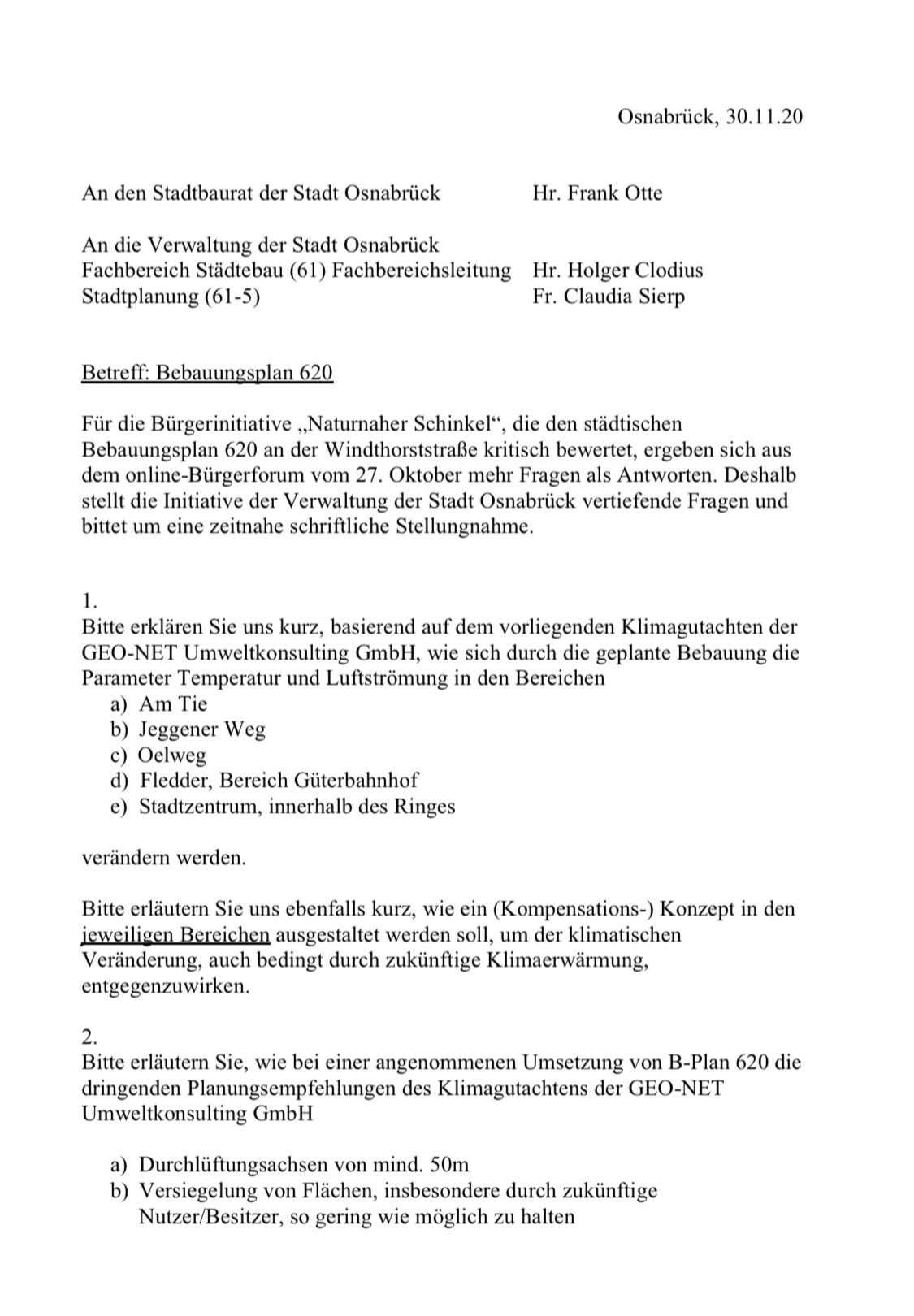 Hier unser Anschreiben an den Rat der Stadt Osnabrück